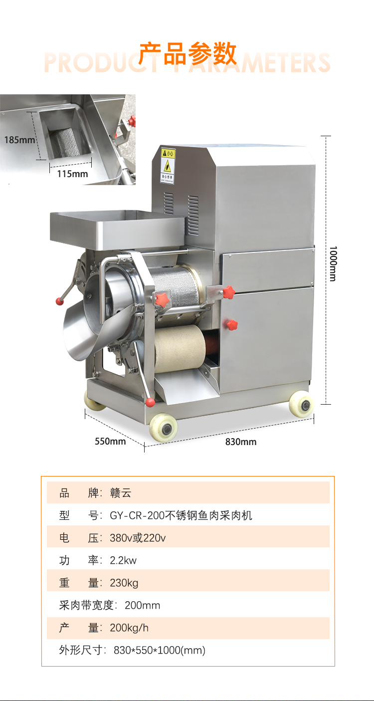 水產(chǎn)加工設(shè)備->魚肉加工設(shè)備->200型不銹鋼魚肉采肉機 | |||||||