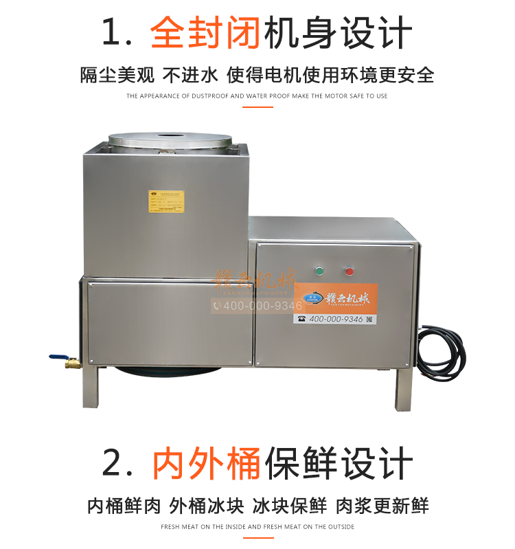 中大型魚丸打漿機采用全不銹鋼材質(zhì),有效的保護了電動機,操作上更安全,制作魚丸更衛(wèi)生,42型慢速肉丸打漿機可一次加工50斤左右魚漿,是中型魚丸,牛肉丸加工首先選慢速拍打設(shè)備之一,贛云歷經(jīng)十年品質(zhì),為您加工魚丸,牛肉丸等設(shè)備保駕護航。
