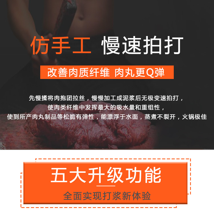 中大型魚丸打漿機采用全不銹鋼材質(zhì),有效的保護了電動機,操作上更安全,制作魚丸更衛(wèi)生,42型慢速肉丸打漿機可一次加工50斤左右魚漿,是中型魚丸,牛肉丸加工優(yōu)選慢速拍打設(shè)備之一,贛云歷經(jīng)十年品質(zhì),為您加工魚丸,牛肉丸等設(shè)備保駕護航。