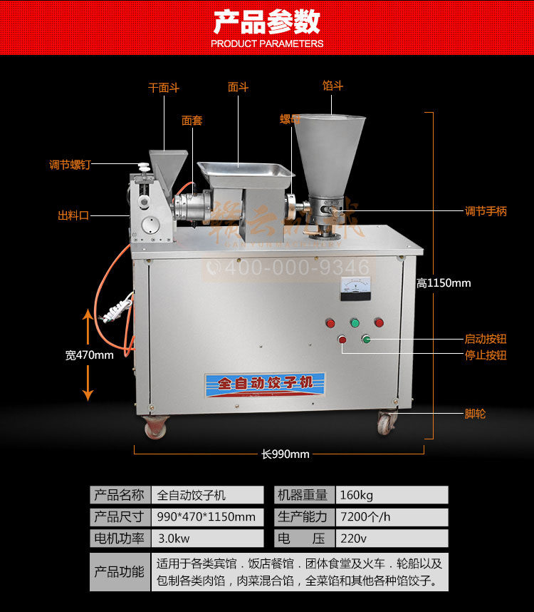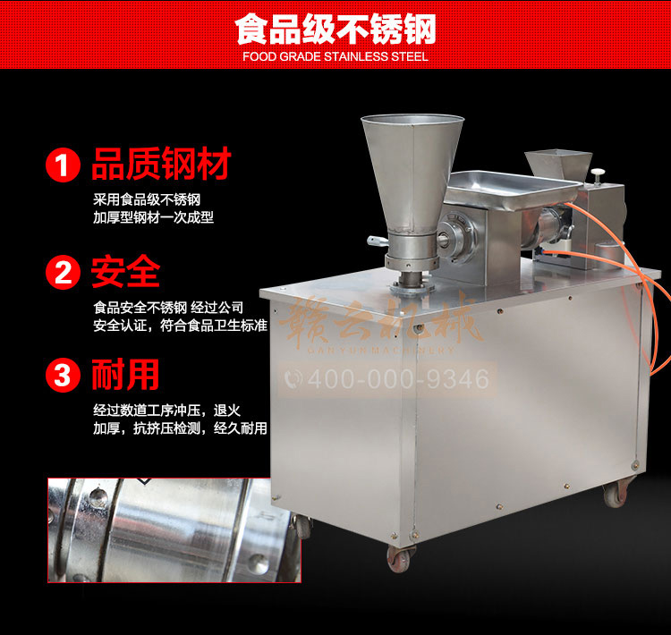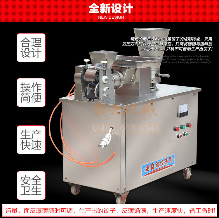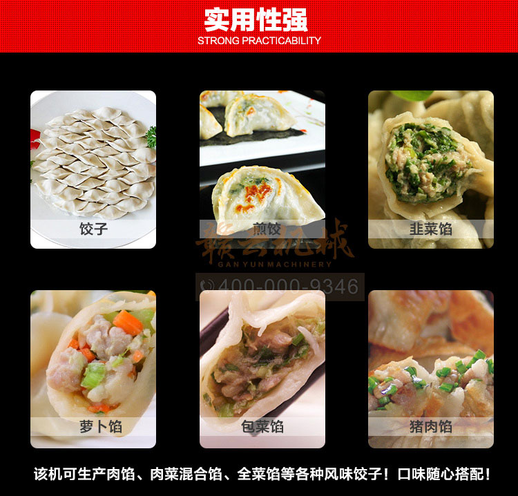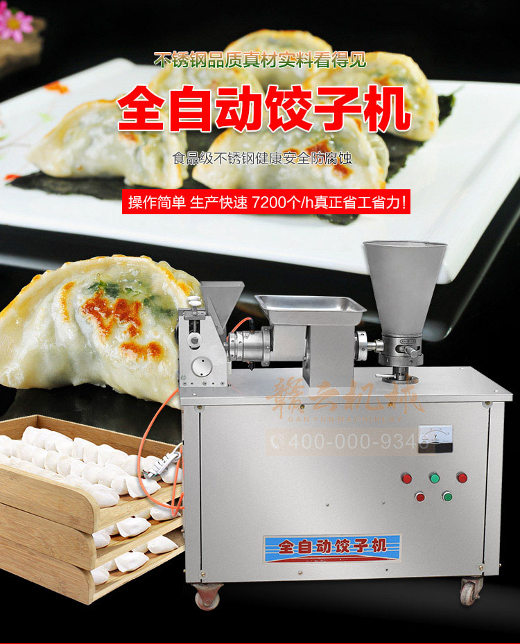 食品級材質(zhì)全自動餃子機,操作簡單,容易入門,生產(chǎn)效率:7200個/h,讓您省工少力,該款電動餃子機可生產(chǎn)肉餡、肉菜混合餡、全菜餡餃子等各種風(fēng)味i不同的餃子!口味隨心搭配!