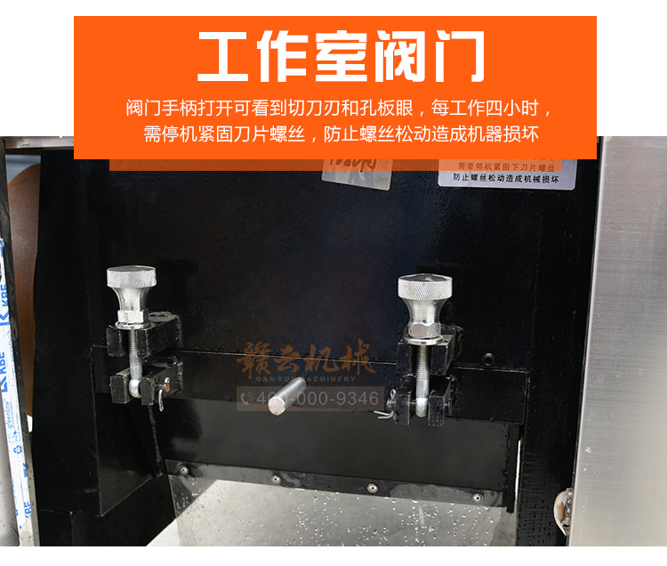 b)開機空轉檢查切刀轉向是否正確,如出現(xiàn)方向反轉,請對換三相電源線接順序;確定切刀轉向正確后,啟動空轉3分鐘,扣緊送投料室,使保護開關完全接觸,符合破碎條件,即可投料生產(chǎn)。