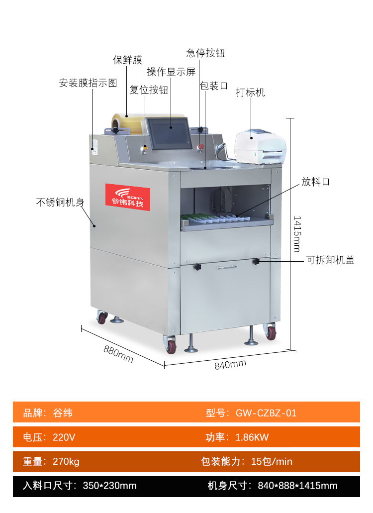 食品包裝設(shè)備->大型包裝設(shè)備->自動保鮮膜包裝機(含打標(biāo)機) | |||||||