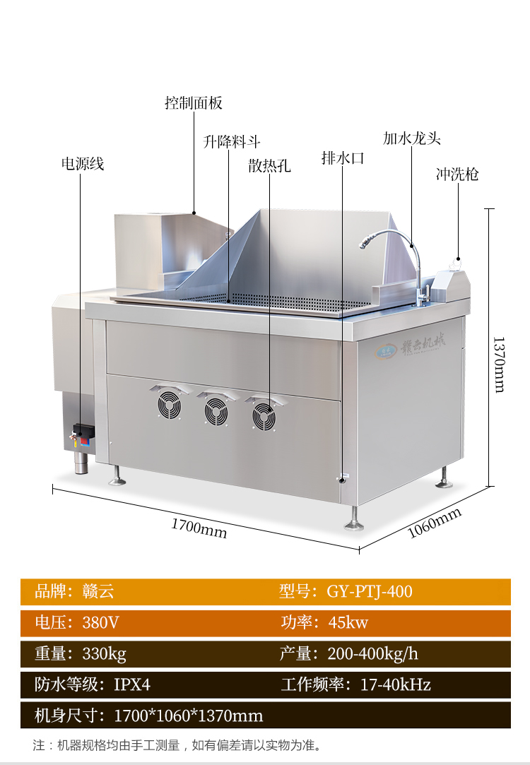 中央廚房設(shè)備->熱調(diào)理區(qū)設(shè)備->400L方形自動漂燙機/焯水/油炸機 | |||||||