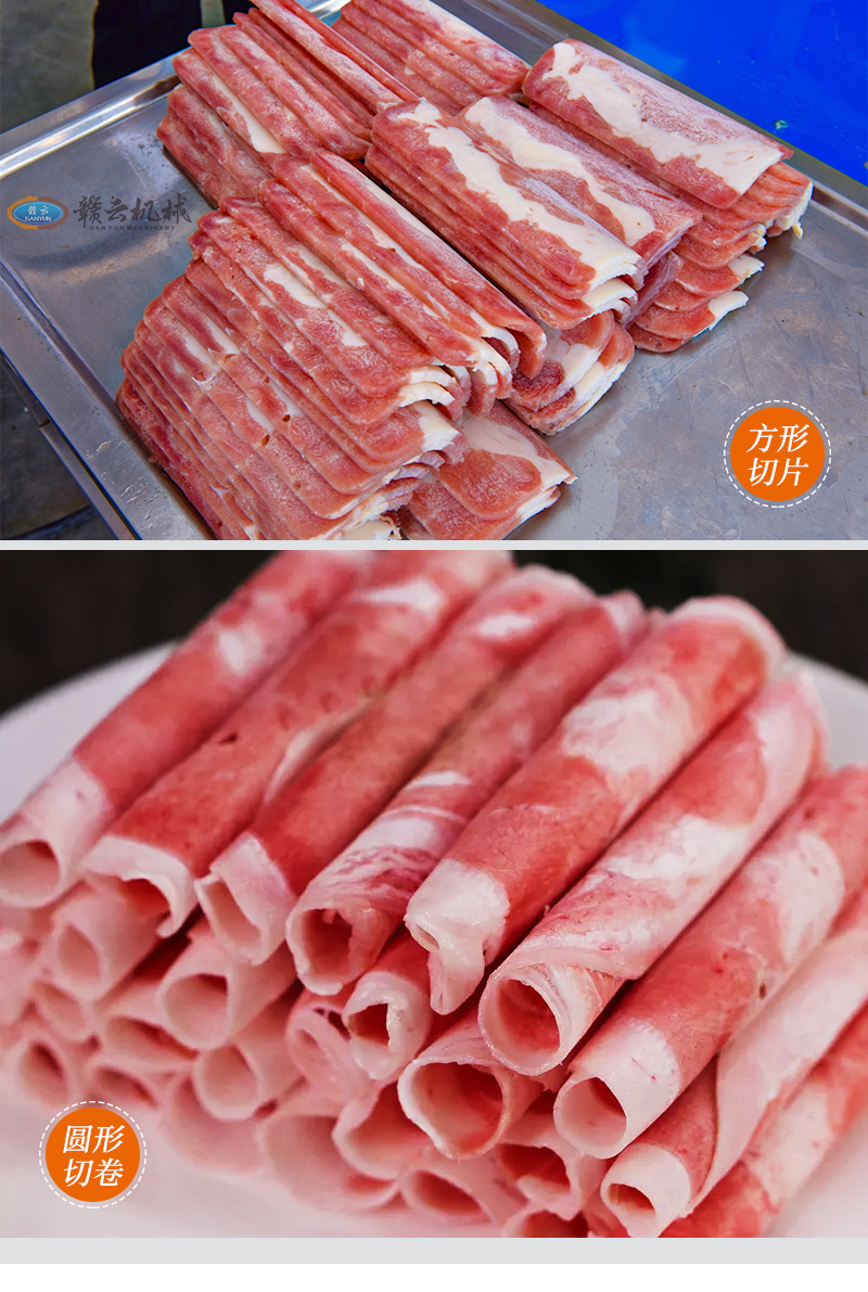 針對凍肉的切片、切卷、切條、切塊。