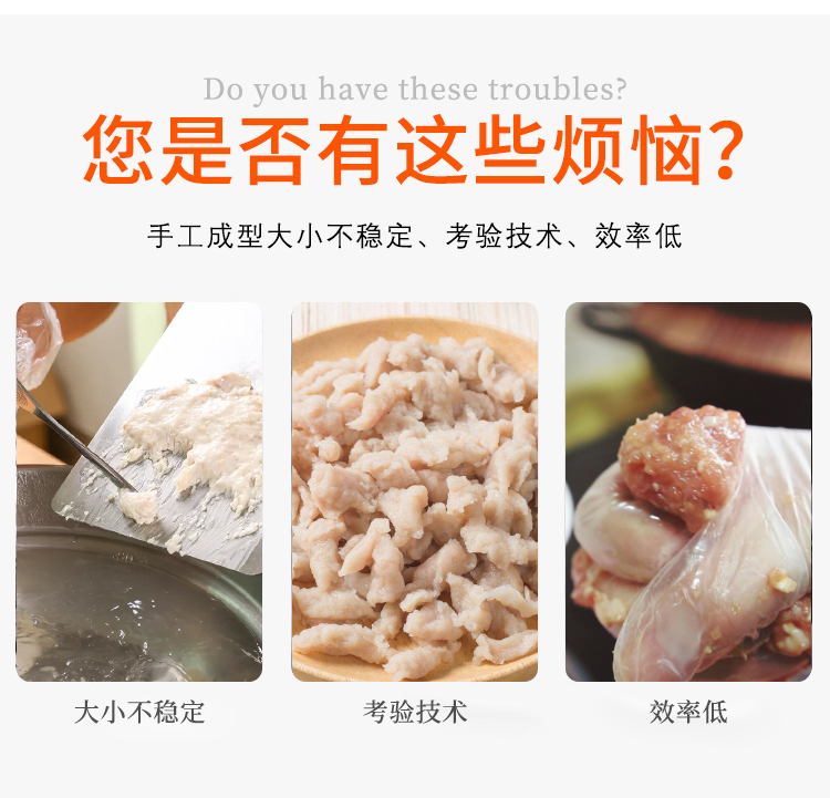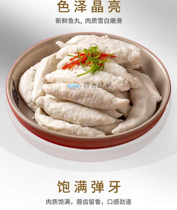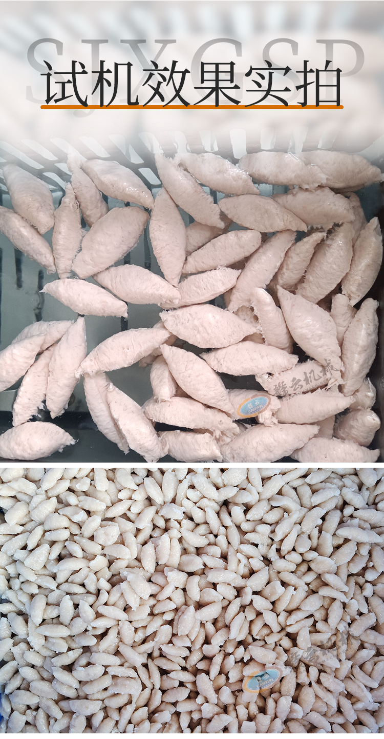 適用于加工成型:眉毛丸子、福鼎肉片、肉羹條、瘦肉羹、潮汕蝦棗等。