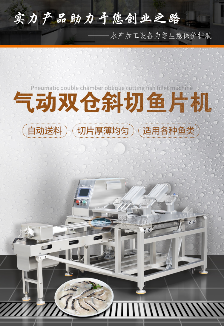 水產(chǎn)加工設(shè)備->魚肉加工設(shè)備->氣動(dòng)雙路斜切魚片機(jī) | |||||||