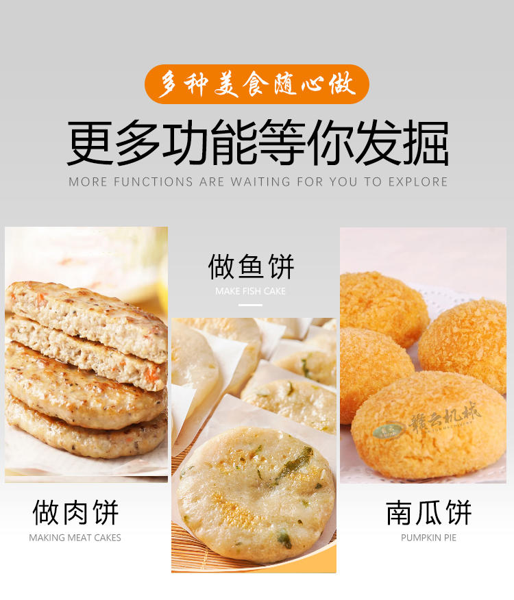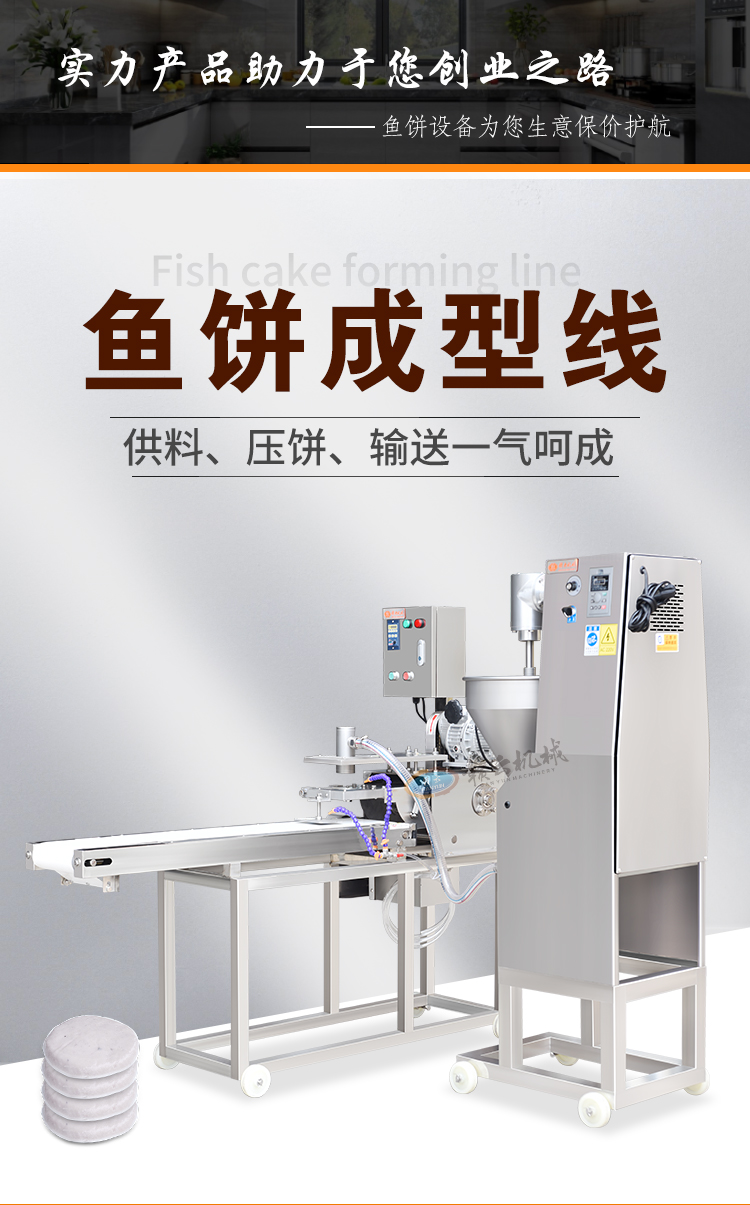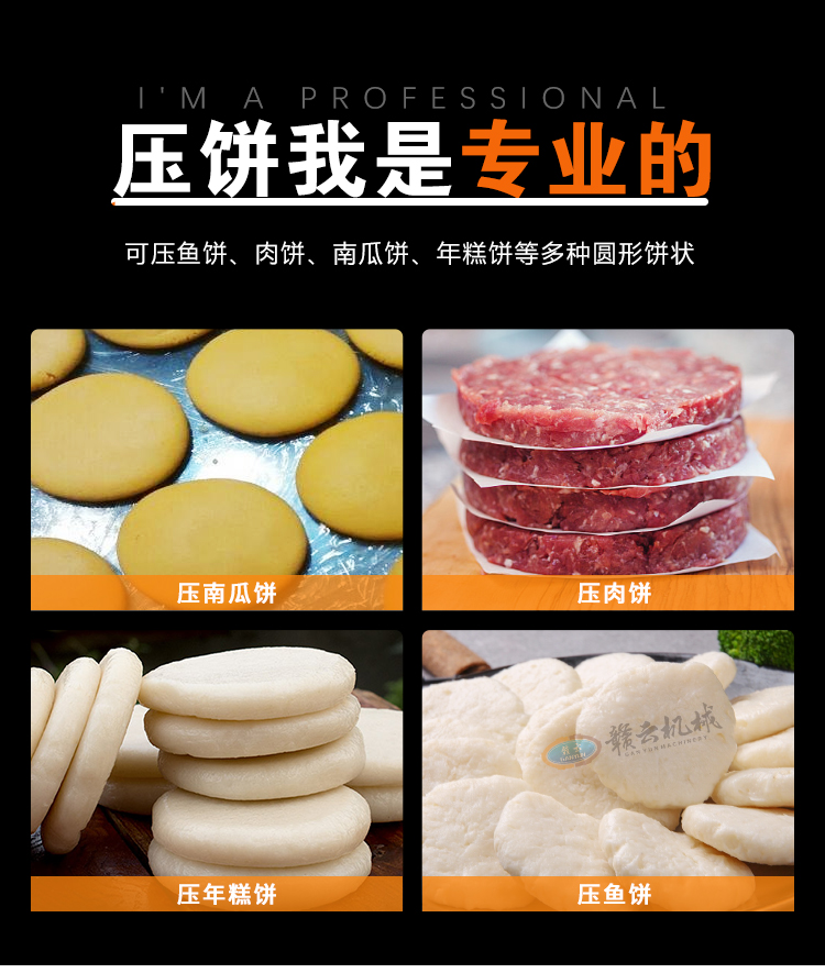 適用于加工魚餅、肉餅、南瓜餅、年糕餅等多種圓形餅狀。