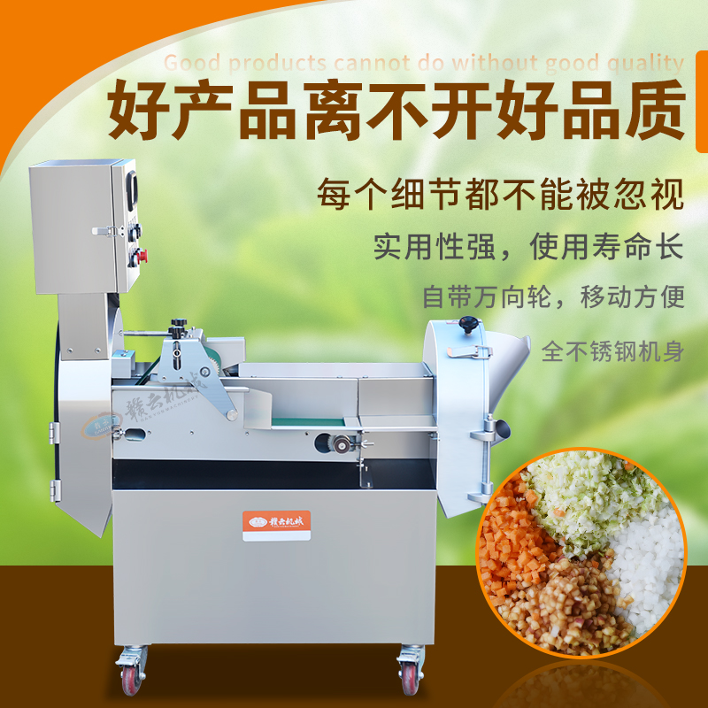 好產(chǎn)品離不開好品質(zhì),贛云切菜機采用全不銹鋼機身,堅固耐用,使用壽命長。機器細節(jié)之處也經(jīng)過精心打磨,注重品質(zhì),值得廣大客戶的信賴,設(shè)備實用性強。切菜機工作效率高,一臺機器堪比10個人工,大大的節(jié)省了人工成本。
