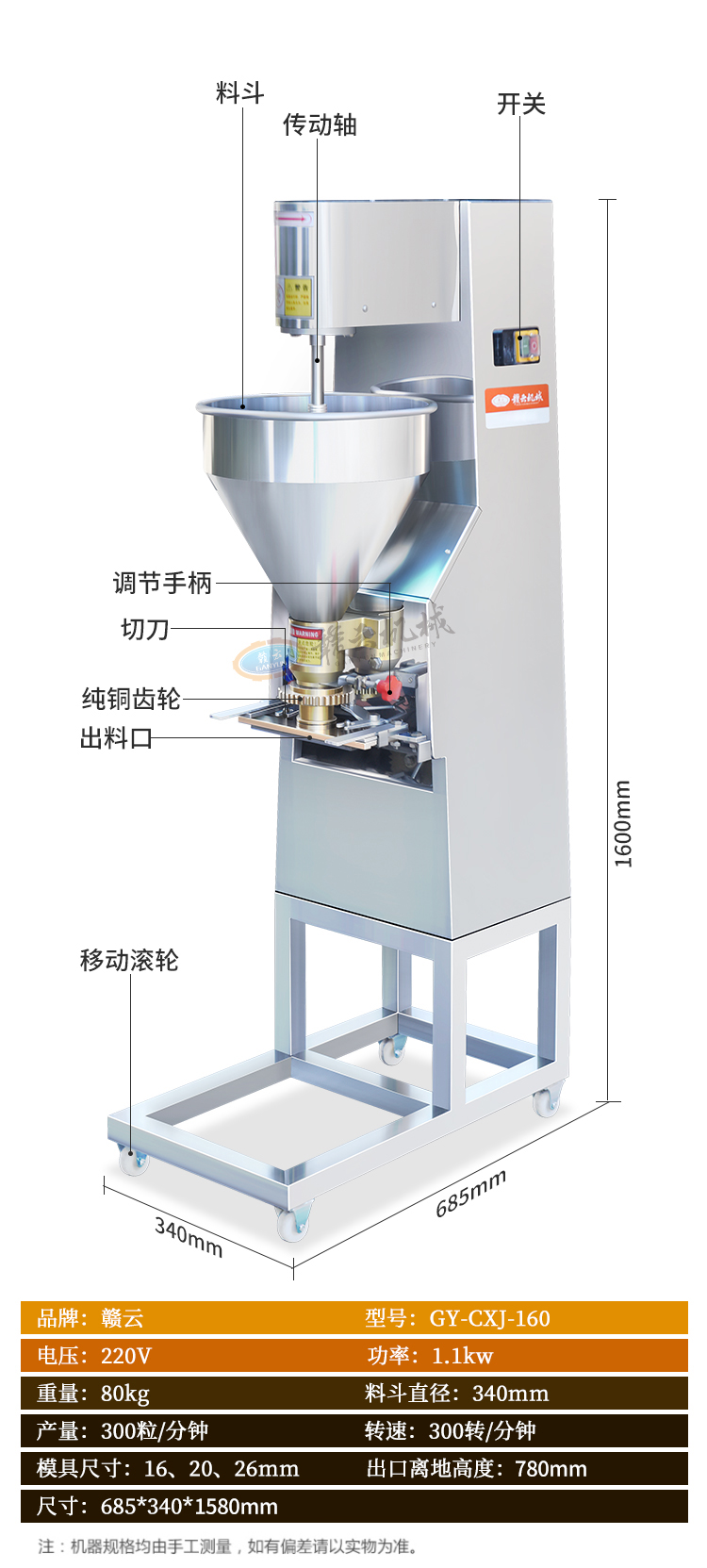 160調(diào)速肉丸成型機