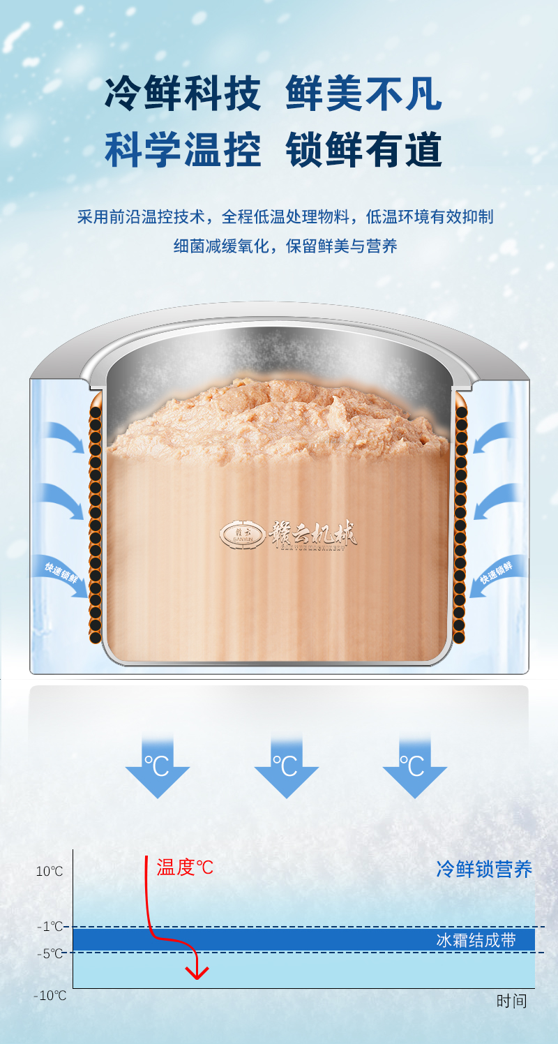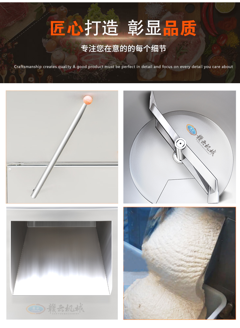 用于魚丸、牛肉丸、豬肉丸等食品的制冷打漿處理,集成自動上料、調速與制冷鎖鮮功能,適用于食品加工廠/肉丸食品廠等。