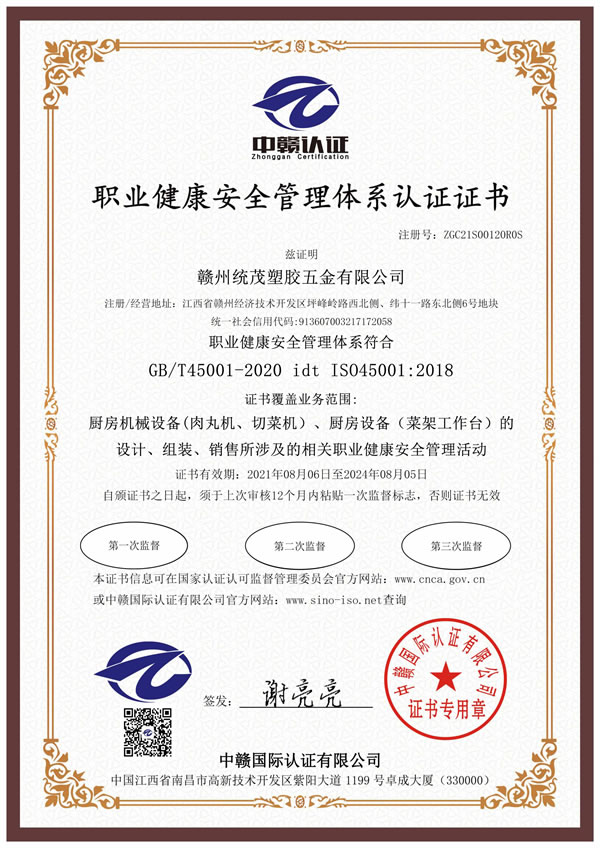 職業(yè)健康安全管理體系認證證書