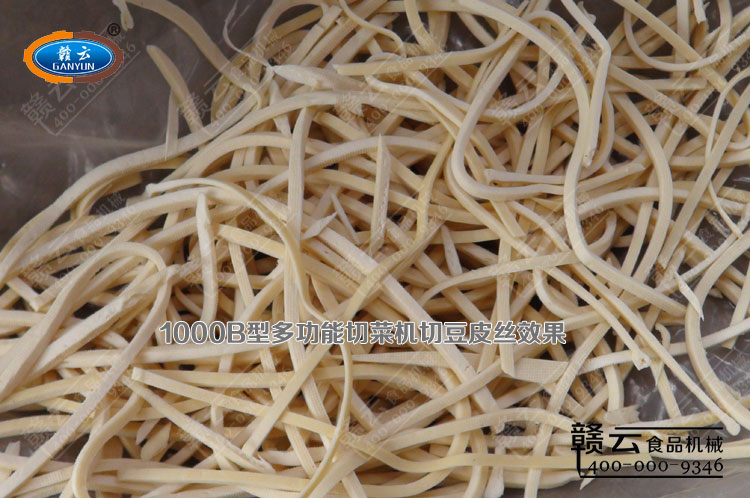 成品豆皮較長較寬,手工切豆皮絲不僅麻煩,而且所切規(guī)格尺寸不均勻,1000B型切菜機切豆皮絲不但切絲厚薄均勻,而且加工效率是手工切絲的幾十倍,原來需要十幾員工人分配切絲的,現(xiàn)在一臺機器就解決了豆皮廠加工需求,大大提高了生產(chǎn)廠家的加工效率,同時解放了更多的勞動力,降低了生產(chǎn)成本。