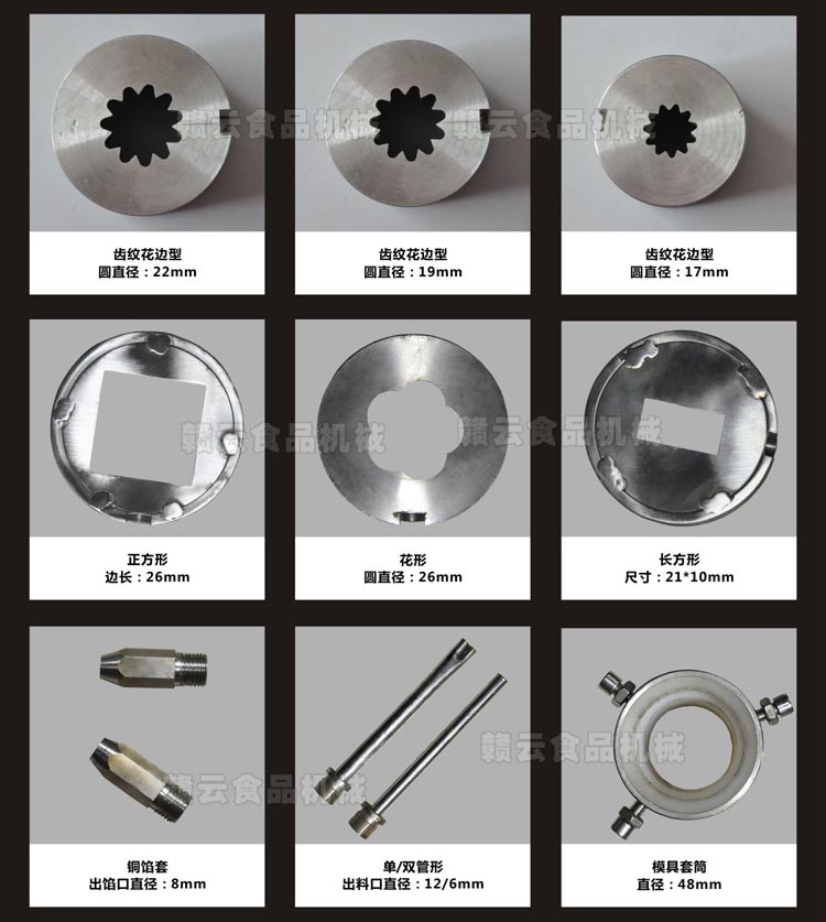 火鍋丸子成型機(jī)安裝不同形狀的模具,成型出不同的火鍋丸子。可成型丸子種類繁多,例如:夾心墨魚條、魚肉卷、魚豆腐、甜不辣、麻花卷、魚排、開口笑黃金包、蟹肉棒、各種實(shí)心包心丸子等。